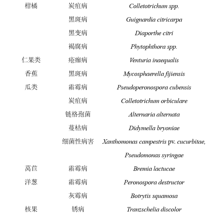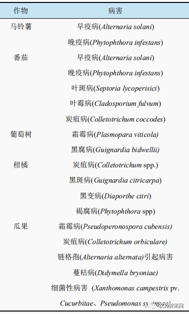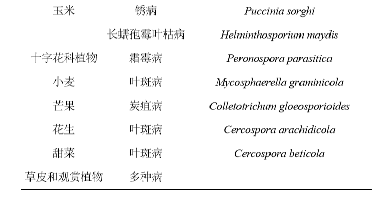 表5 代森锰锌的最重要用途(作物-病害组合)