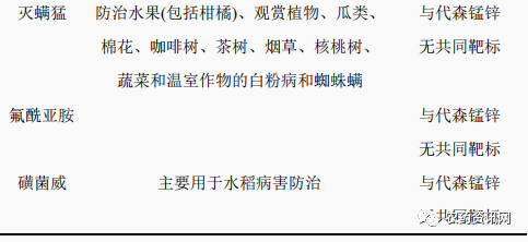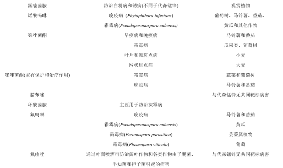 表4 多作用位点杀菌剂可能替代代森锰锌的用途