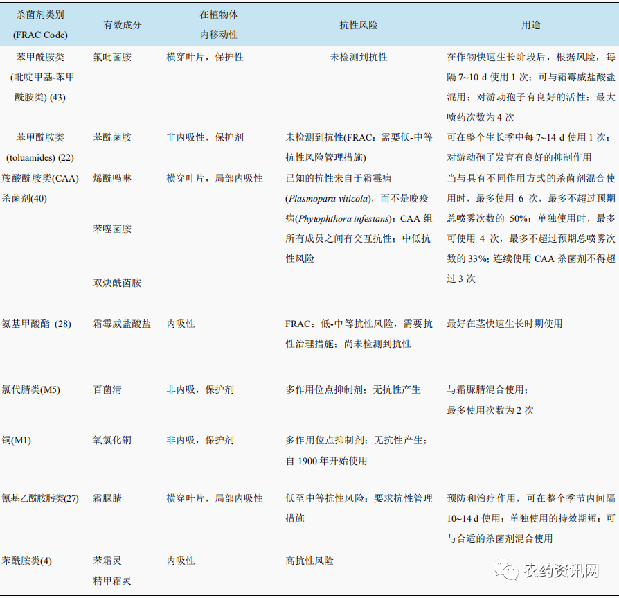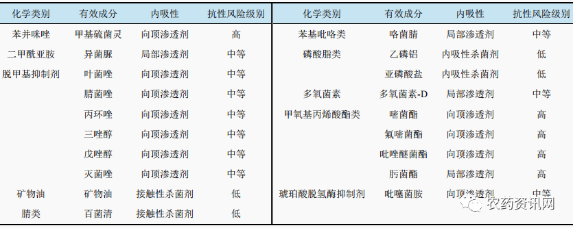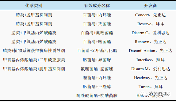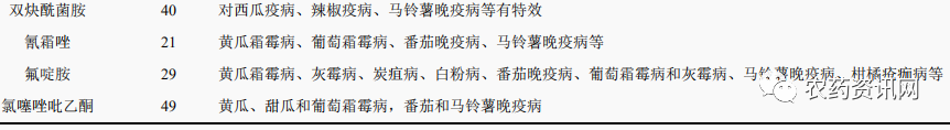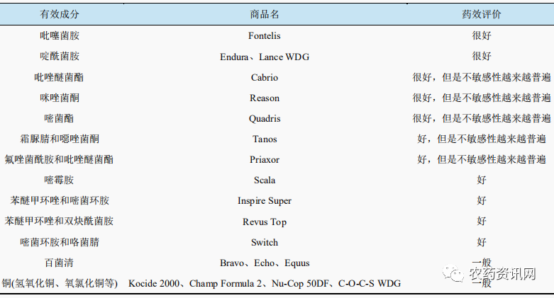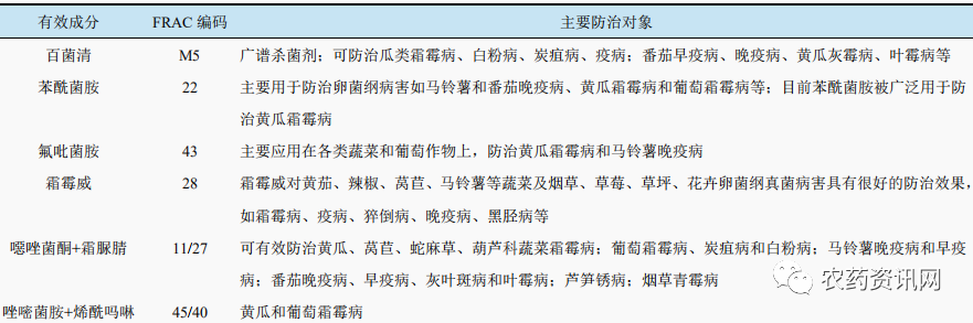 表6 防治马铃薯晚疫病的杀菌剂有效成分