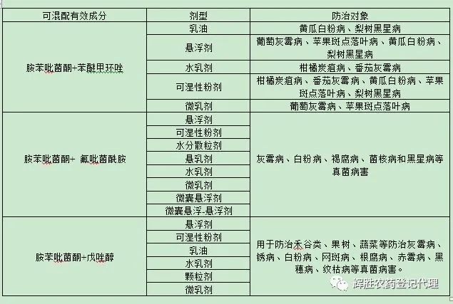 表1 胺苯吡菌酮可复配的有效成分推荐