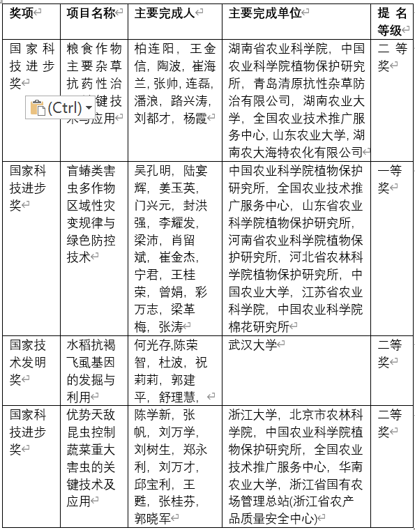 我们梳理发现其中有四项涉及病虫草害的植保项目入围,详情如下: