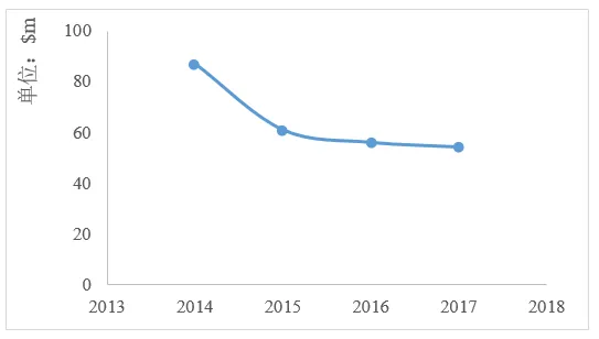 图1:氟酰脲2014~2017年销售额情况(单位:$m)