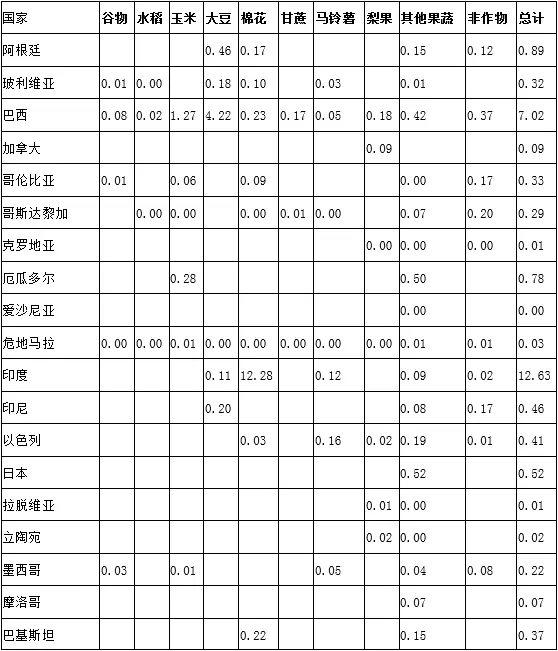 市场区域 | 国家 | 作物 | 销售额($m) | 销售量(000kg) | 折百单价(USD/kg) |