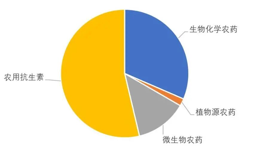 7.生物源农药登记情况2020年上半年共有54项生物农药获登,其中生物化学农药17项、微生物农药7项、农用抗生素29项、植物源农药1项。而2019年仅22项生物农药获登。