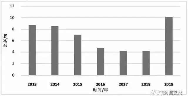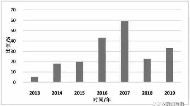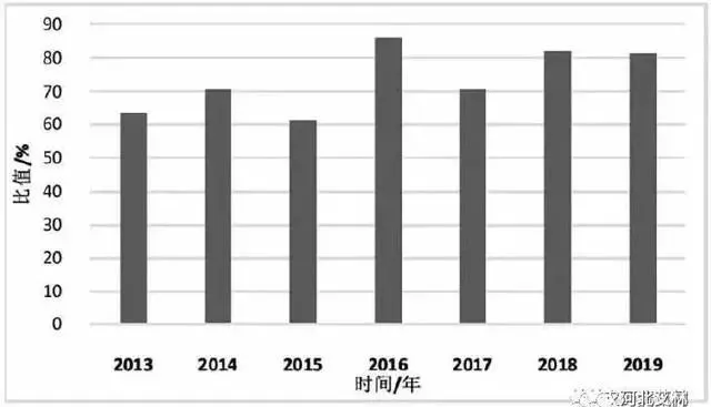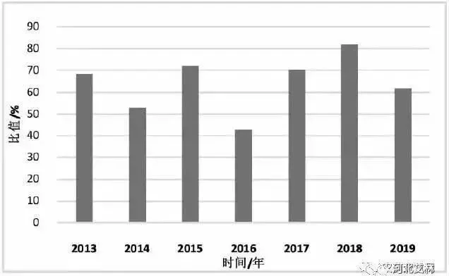 图12 2013—2019年生物新农药与本年度新农药登记数量比值