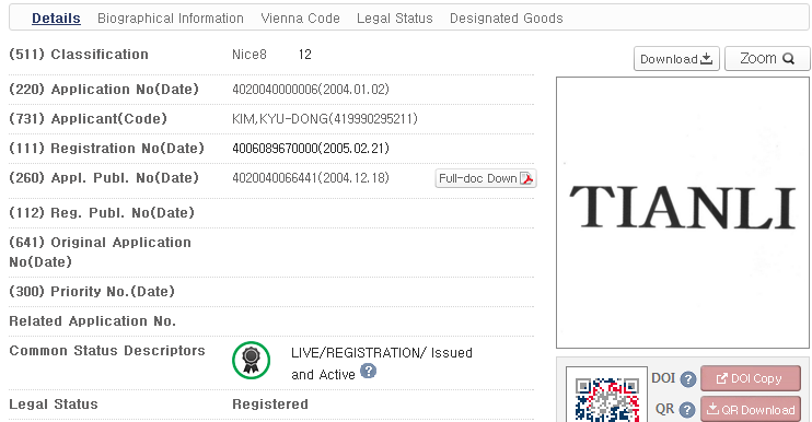 l 联合橡胶轮胎(第12类)在韩国被抢注(抢注商标仍然注册)