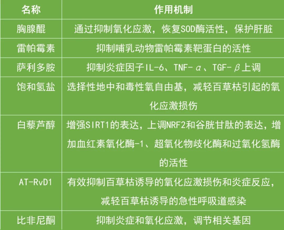 表2 7种化学物质缓解百草枯中毒症状的作用机制
