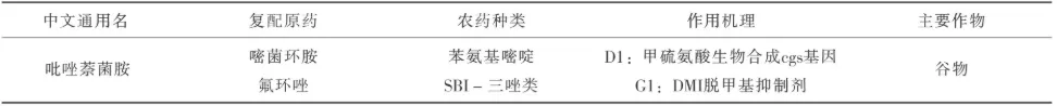 表1 SDHI类杀菌剂吡唑萘菌胺的复配方案