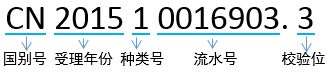 国别码是两位字母,代表专利受理国或地区的缩写,中国是CN。专利受理年份,以2003年10月1日为界,之前采用公元纪年的后两位数字,之后采用后四位数字。校验位由标点“.”和一位数字或字母组成,主要用于校验整个申请号的正确性,并无特殊含义。