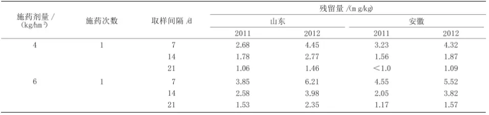 表5 30.2%抑芽丹水剂在土壤中的最终残留试验结果