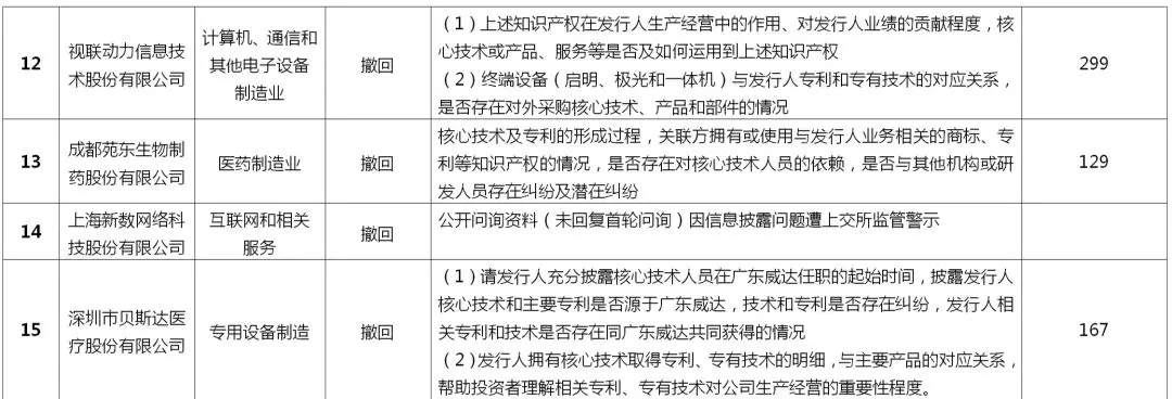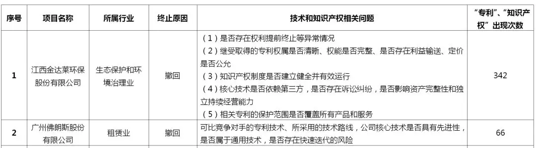 表2:科创板已终止项目知识产权相关问询问题