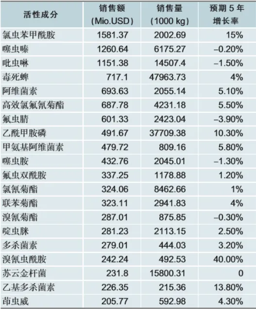 表3 不同品种杀虫剂全球销售情况