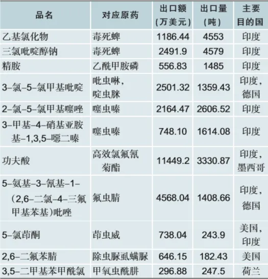 表5 主要出口原药品种