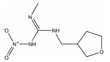 (3)环境归趋:动物中,在大鼠体内广泛吸收,并注意通过尿在168小时内完全排出体外,几乎不发生代谢作用。植物中,如在莴苣中,代谢产物包括1-甲基-3-(四氢-3-呋喃甲基)胍和1-甲基-3-(四氢-3-呋喃甲基)脲。土壤/环境:水中光解DT50为1.8天,土壤中DT50为50~100天,主要降解产物为1-甲基-2-硝基胍。