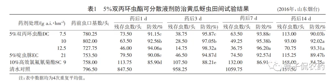 据《农药》杂志关于《新型杀虫剂双丙环虫酯对黄瓜蚜虫的田间防效》的报道: