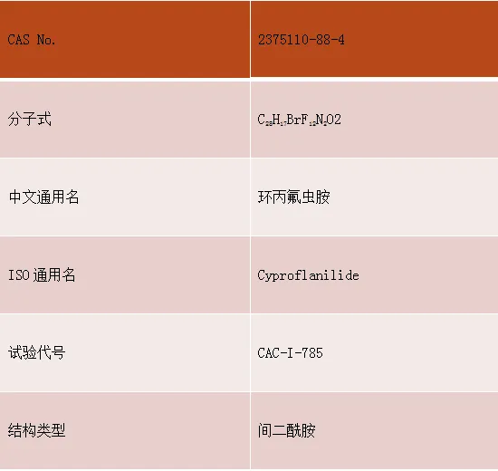 环丙氟虫胺是南通泰禾化工股份有限公司创制的间二酰胺类杀虫剂,归类为IRAC分类第30组,作用机制新颖,与杀虫剂氯虫苯甲酰胺、阿维菌素等等无交互抗性,其基本信息如下:
