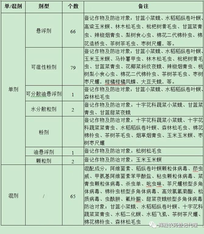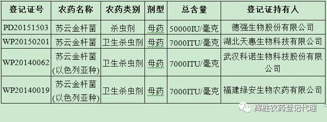 农林用苏云金杆菌制剂产品登记情况