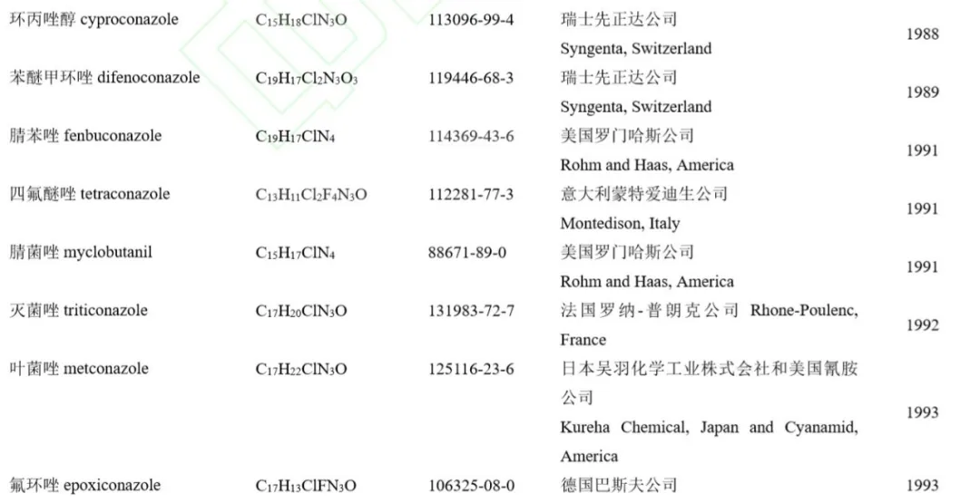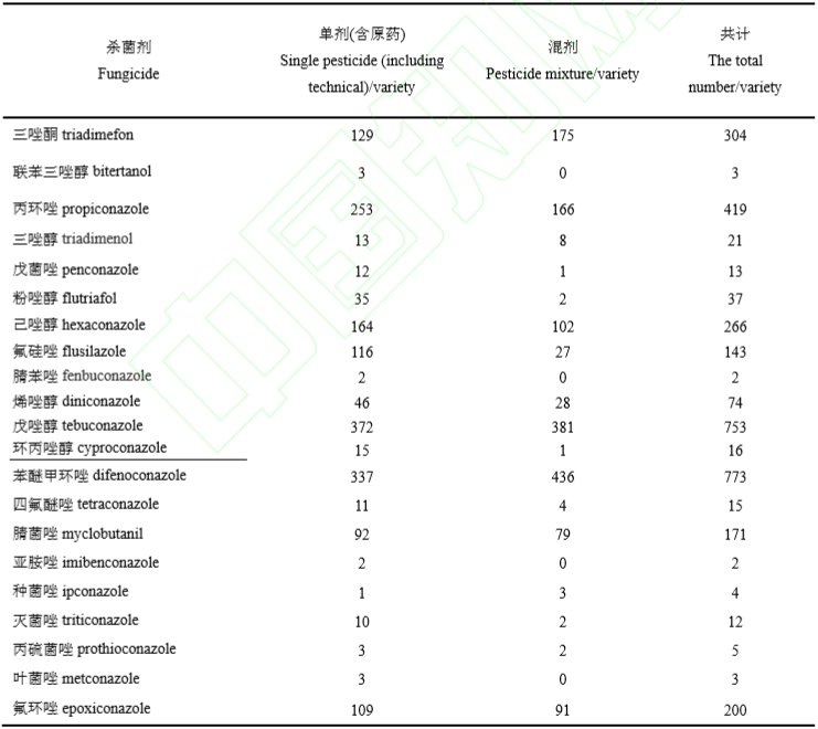 Table 2 Registered quantity of twenty-one triazole fungicides