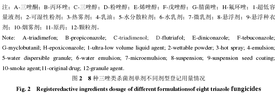 2.2.1 8 种三唑类杀菌剂不同剂型的登记用量差异