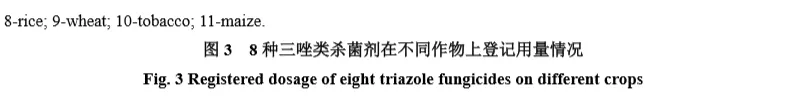 2.2.2 8 种三唑类杀菌剂在不同作物上的登记用量差异