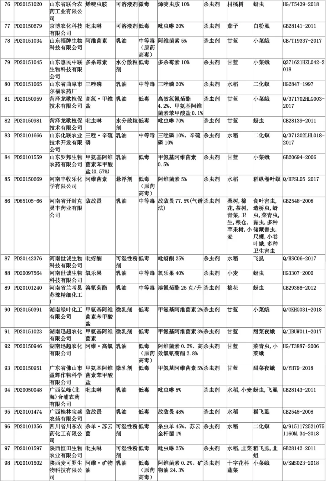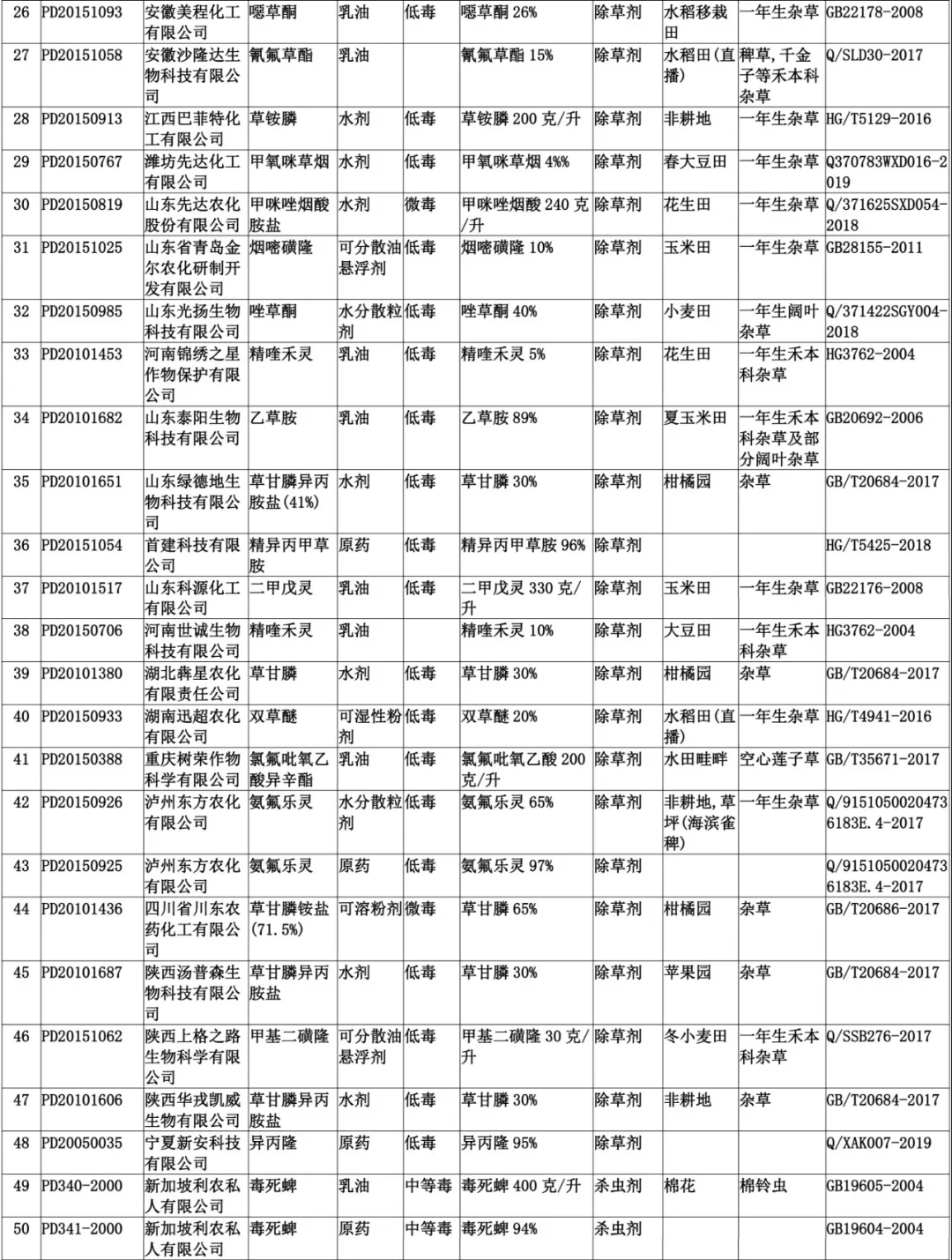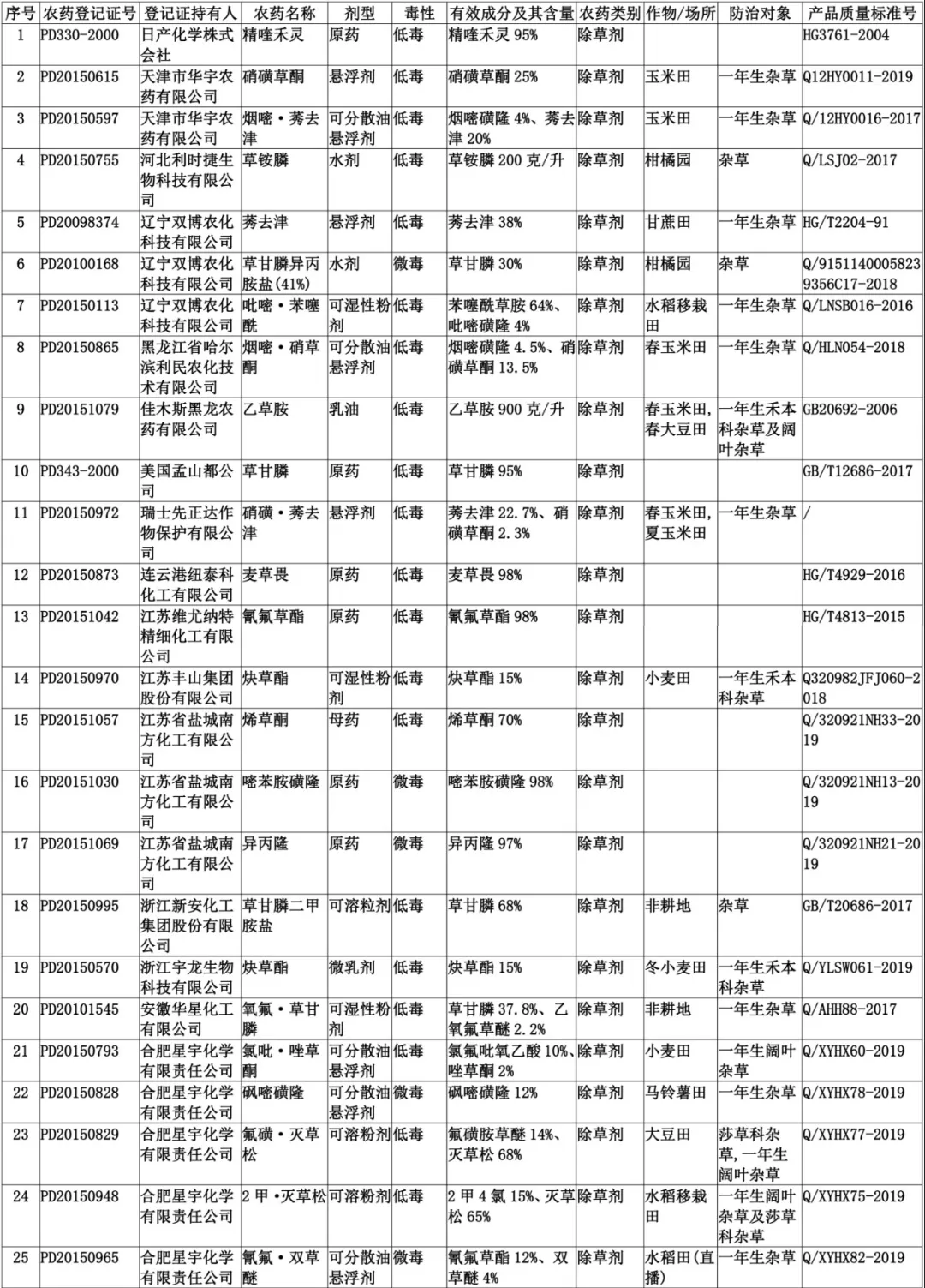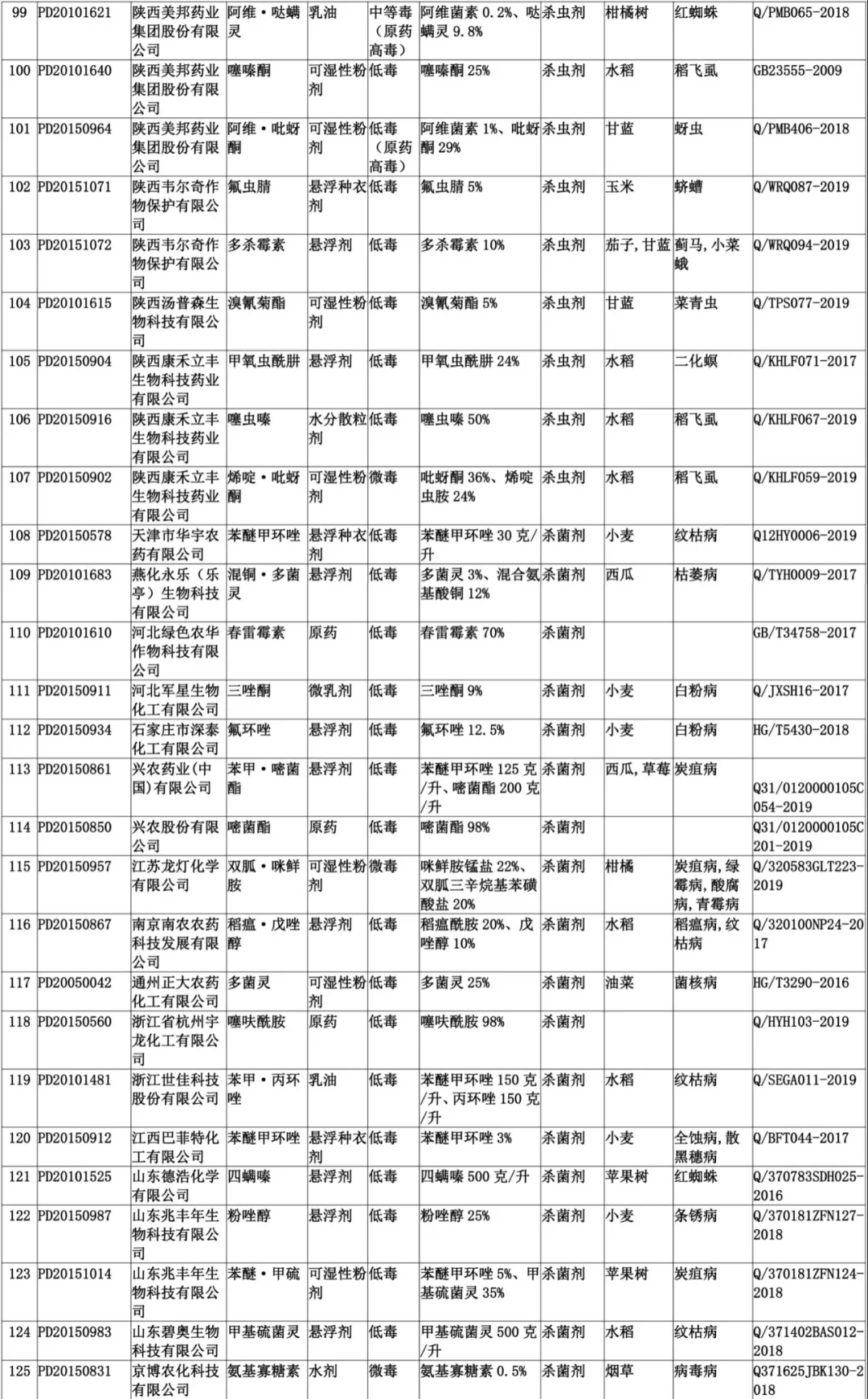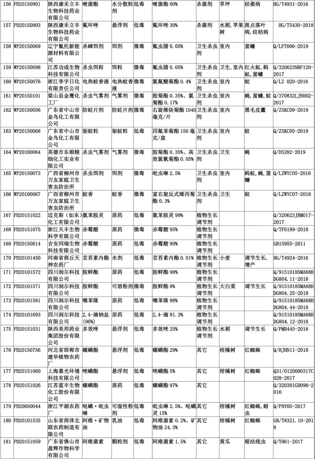 181个农药产品登记延续,涉及111家企业(含具体名单)