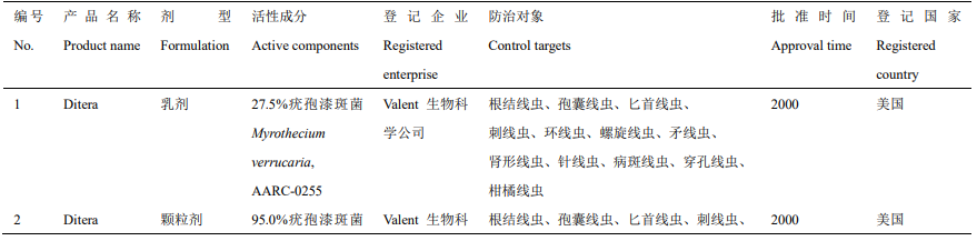 表2 中国和国外生物杀线剂产品登记情况 导出到EXCEL