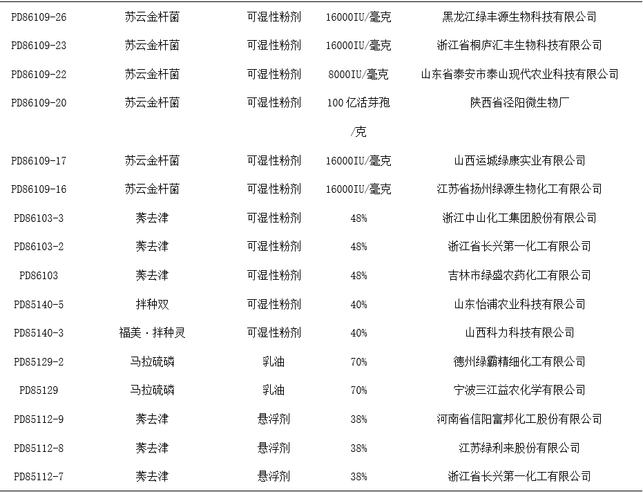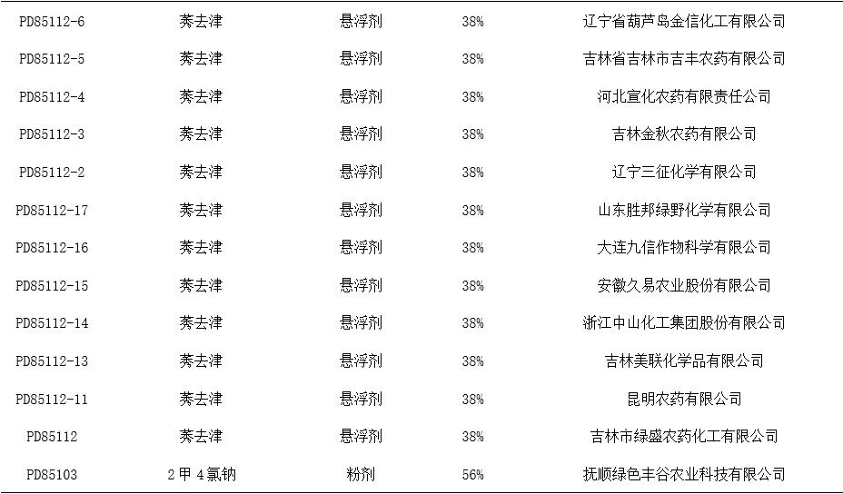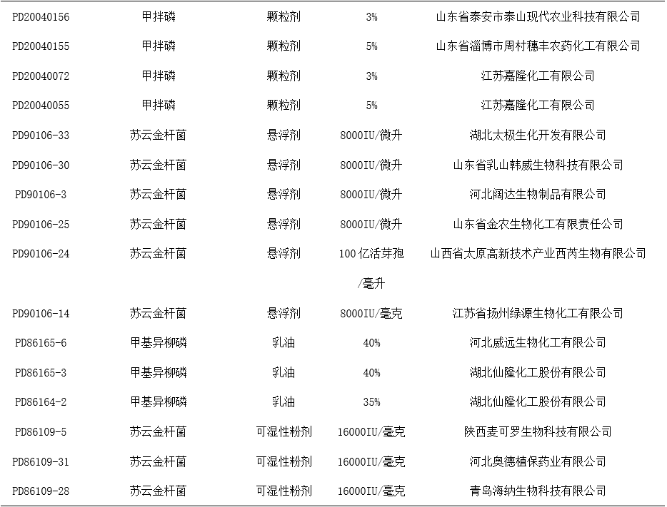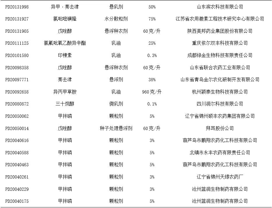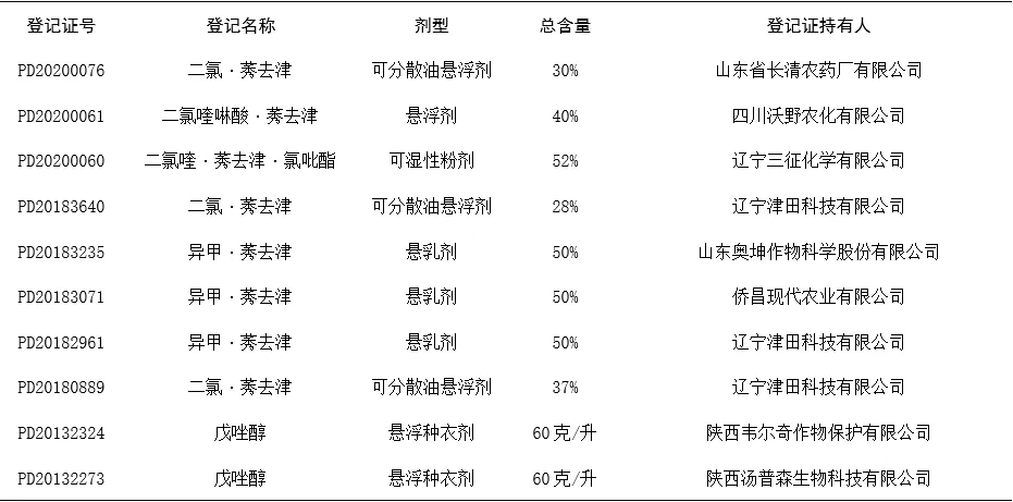 表1 我国在高粱上批准登记的农药产品
