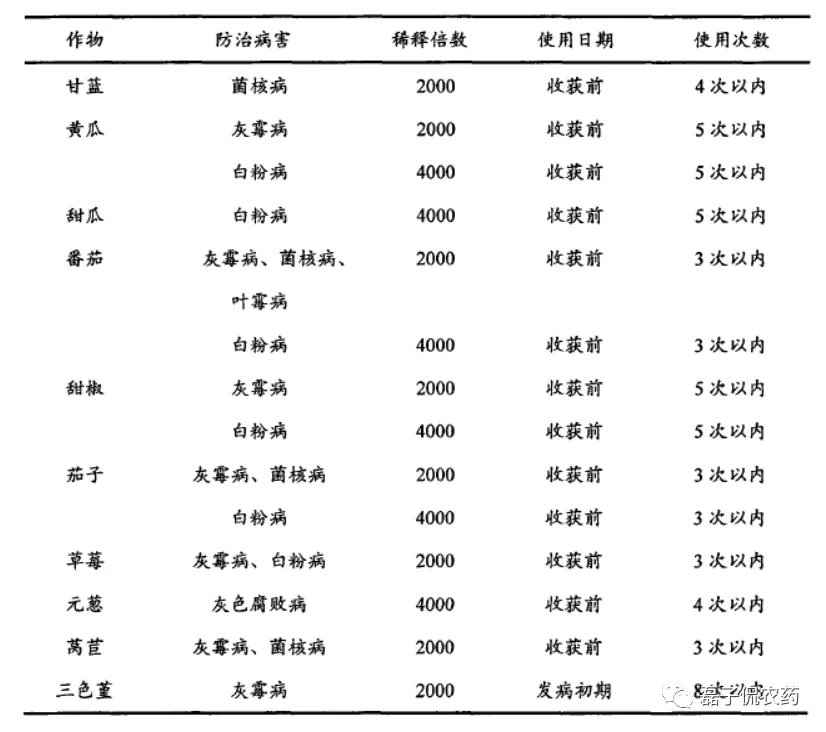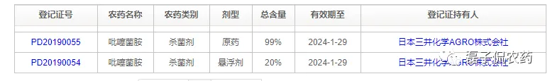 我国仍然只有日本三井化学AGRO株式会社具有登记, 分别是原药和 20% 悬浮剂,登记作物是黄瓜和葡萄。