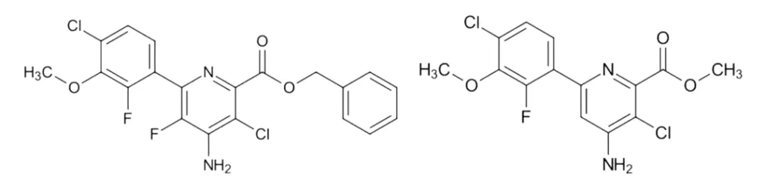 氯氟吡啶酯和氟氯吡啶酯(halauxifen-methyl)化学结构非常相似,两者共享同一化合物专利保护。