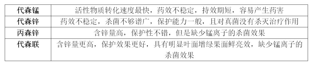 由于代森类产品作用于病原菌细胞上的多个位点,病原菌难以产生遗传性适应能力,其抗药性风险较低。代森锰锌虽已问世50多年,但至今尚未发现植物病原真菌对其有明显的抗药性。和代森锰、代森锌等杀菌剂相比较,代森锰锌的分子结构更加稳固,喷施在植物体上以后,实际活性成分EBIS和EBI的转化更加稳定可控,这就造就了代森锰锌对病害的药效更好、对作物的安全性更高等优势。