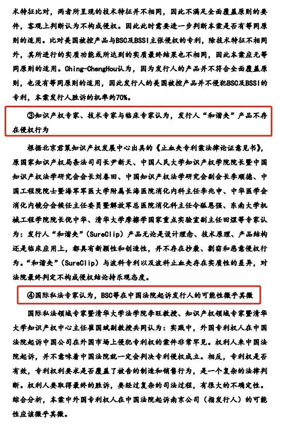 前段时间,某企业A在科创板上市问询中被问及—企业的产品是否存在侵犯某被改进的基础技术专利权的风险?企业A在答复中列举了竞争对手的几个产品专利,并解释如下 :(2)某些专利虽为在先专利,但发行人的专利也获得了授权,因此,不存在侵犯在先专利的风险;(3)某些专利是在发行人获得专利权后申请的,晚于发行人获得专利权,因此,不存在侵权风险。且不论,发行人答复中是不是随便挑了几个专利,就说面对列出的专利,并没有将产品和专利进行侵权比对,仅凭自己也有专利,就得出不存在侵权风险的结论,仿佛略糊弄审核机构和广大投资人。笔者不禁讶异,难道现在有企业即将IPO了,还真的认为自己产品有专利,就不会侵权他人的专利权了吗!?让我们来看一下,同样面对知识产权风险问询,其他企业怎么回答。审核机构针对“发行人核心技术是否涉及核心技术人员原单位职务成果,是否与原单位存在冲突和纠纷”进行问询,发行人以律所出具的侵权风险分析报告作出回应:“发行人核心技术对应专利均为发行人自主申请取得,不存在从第三方或发行人员工处受让取得的情形,不涉及员工原单位职务成果的情形。北京市XX律师事务所出具的《XX侵权风险分析报告》显示......侵害目标公司境内专利权风险的可能性较低”。存在的问题1:正是因为将原单位的成果拿到新单位申请专利,才有了职务发明,没有专利受让并不能代表企业申请的专利不涉及原单位职务成果。存在的问题2:侵权风险分析报告很好,但用错了地方,不侵权是不侵犯目标公司已有的专利权,但不能代表企业目前的专利不涉及职务发明。审核机构针对“发行人产品是否在产品进口国家/区域存在侵权风险”提出问询,发行人以知识产权服务机构出具的专利分析报告作出回应:“根据XX专利商标代理有限公司出具的《专利分析报告》,上述5项核心应用技术与同行业主要竞争对手涉及到XX的境外专利技术不相关”。存在的问题:询问国家/区域侵权风险,却只给出了主要竞争对手的专利分析,不能说明在该国家/区域不存在侵权风险。南京微创医学科技股份有限公司(充分应对,值得参考):审核机构针对发行人某核心产品在美国、德国遭遇的未决专利侵权诉讼,重点问询:不侵权理由、依据是否充分;产品涉诉情况是否会扩展到其他区域;是否扩展到其他产品的风险等。发行人:1. 借助专利律师、知识产权专家、国际私法专家、技术专家观点,给出不侵权依据;2. 借助知识产权服务机构出具的《防侵权检索报告》,证明其涉诉产品在美国、欧洲未发现其他高侵权风险专利;3. 指出即使侵权,涉诉产品市场份额低,侵权赔偿小,不会对生产经营造成重大影响;4. 指出已有改进产品,且通过知识产权服务机构出具的《防侵权检索报告》证明,改进产品在美国、欧洲未发现其他高侵权风险专利。