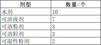 S-诱抗素登记产品剂型有水剂、可溶液剂、可溶粉剂、可溶粒剂、可湿性粉剂等,其中水剂登记数量10个,占比40%,占有相对优势。(见表3)