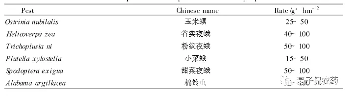 (多杀菌素对不同害虫的活性成分使用量)