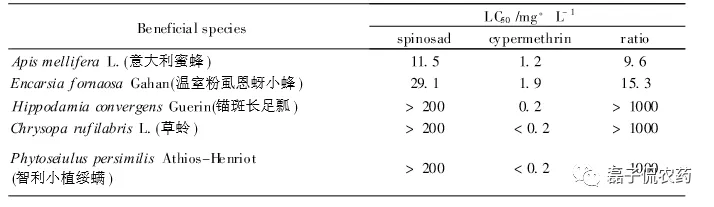 (多杀菌素和氯氰菊酯对部分天敌的毒性)