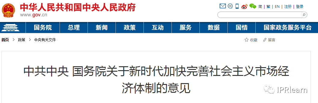 近日,中共中央 国务院 印发 关于新时代加快完善社会主义市场经济体制的意见通知提到“完善和细化知识产权创造、运用、交易、保护制度规则,加快建立知识产权侵权惩罚性赔偿制度,加强企业商业秘密保护,完善新领域新业态知识产权保护制度。”