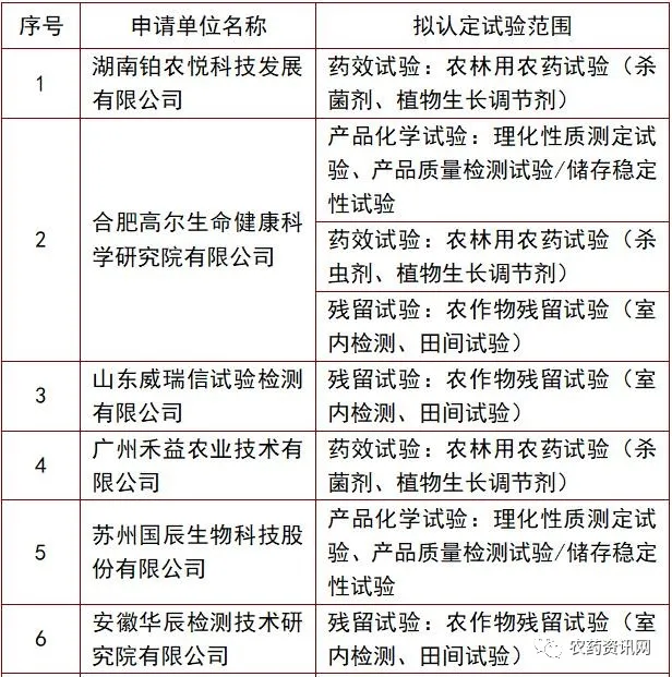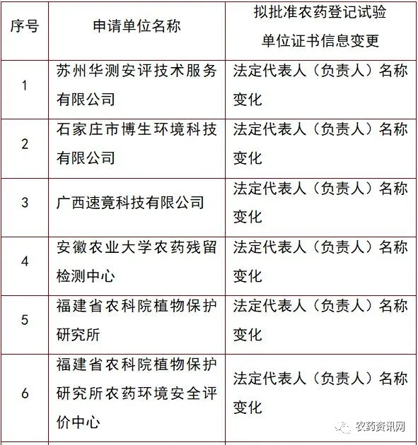 2、拟批准农药登记试验单位证书信息变更