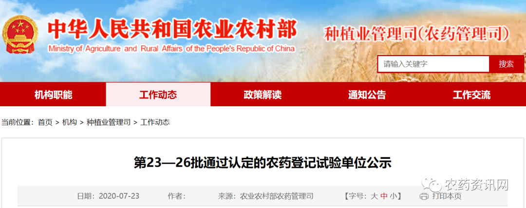 第23~26批通过认定的农药登记试验单位公示