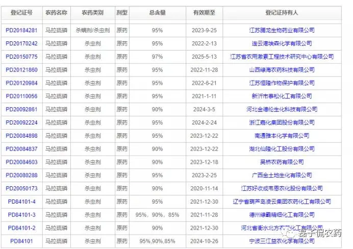 主要出口为马拉硫磷原药和 45% 乳油,以及15%马拉硫磷+5%氰戊菊酯乳油。