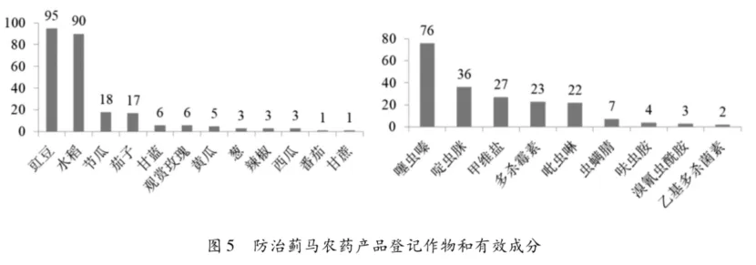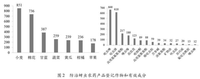 一是小型害虫防治用药登记主要集中在吡虫啉、啶虫脒等新烟碱类和阿维菌素等农用抗生素产品上,近年来新增登记产品以新烟碱类为主。