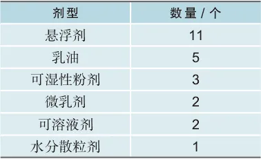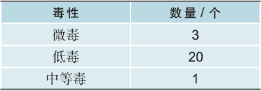 柑橘树上农药登记制剂产品的毒性有微毒、低毒、中等毒三种,低毒产品的数量有20个,占比83.3%,这说明我国柑橘树上农药制剂的登记趋势向着毒性更低、更安全的方向发展,各农药企业应该顺应登记趋势,降低登记风险。(见表3)