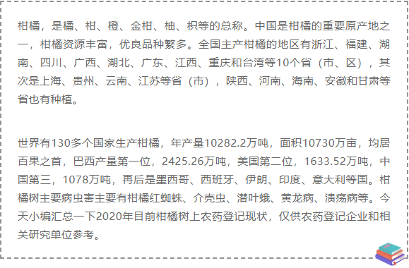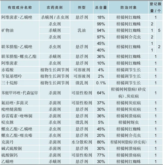 表1 2020年柑橘树上农药登记有效成分及防治对象