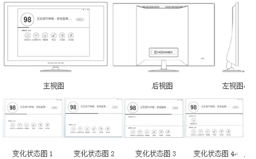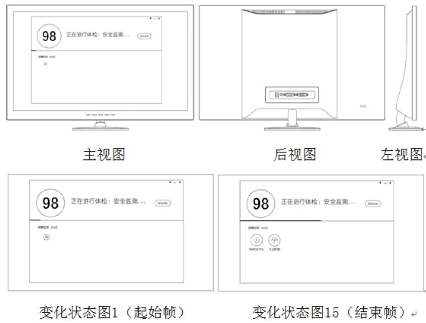 涉案发明专利名称为“带图形用户界面的电脑”,专利号为ZL201430324283.6,专利权人为北京奇虎科技有限公司和奇智软件(北京)有限公司,无效请求人为江民新科技术有限公司。涉案专利设计1、对比设计1和对比设计2分别如图3、图4和图5所示。从涉案专利设计1的全部视图可以看出,涉案专利包含了图形用户界面以及图形用户界面的载体电脑显示设备,而对比设计1和对比设计2的组合属于具有明显启示的组合方式,可以将二者组合视为一项设计,对涉案专利是否符合《专利法》第二十三条第二款进行评述。遵循整体观察、综合判断的原则,涉案专利的GUI设计与对比设计1所示GUI设计整体视觉效果基本相同,而涉案专利的电脑显示设备与对比设计2的电脑显示设备在产品的正面下部按钮、底部底座以及显示设备背面的结构等均不相同。但在无效认定中,国家知识产权局专利局复审和无效审理部则认定,涉案专利对整体视觉效果具有显著影响的设计在于其GUI设计,即便涉案专利与对比设计的硬件设备差别明显,但这一差异不足以对整体视觉效果产生显著影响。据此,复审和无效审理部最终得出涉案专利与对比设计1、2的组合相比不具有明显区别的结论。由此可见,在无效宣告程序中,图形用户界面的载体即硬件产品并非无效审理中重点考虑的因素;也就是说,即便将GUI依附于具体产品,也未显著增加专利权的稳定性。举例说明将GUI类产品作为软件产品给予外观设计保护的可行性