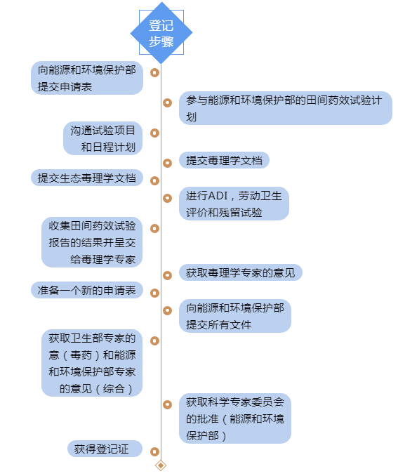 2)正式登记。有效期5-10年,需要2-2.5年时间完成(包含临时登记的1-1.5年)。大多数毒理学评价研究可在第二年进行。