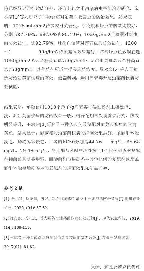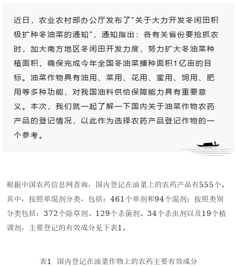 关于油菜作物农药产品的登记情况,了解一下!