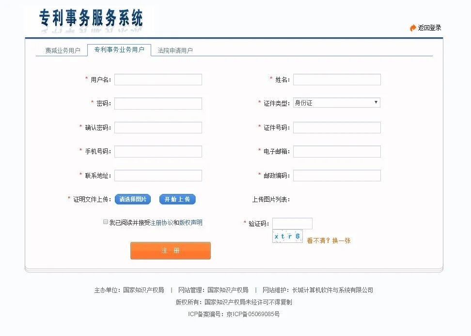 在“专利事务服务系统”注册成为“专利事务业务用户”或使用“中国专利电子申请网”已注册用户名及密码也可同步使用专利事务系统喔!