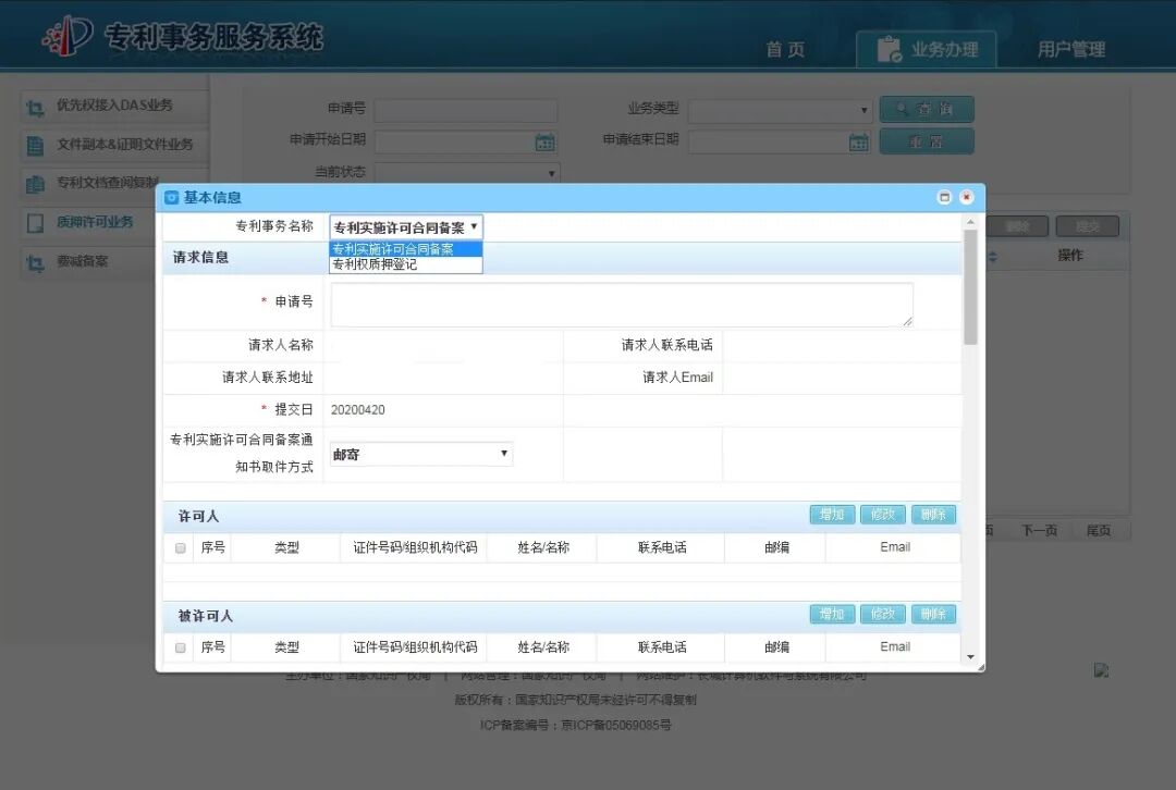 选择您要办理的质押或许可业务后,请根据系统要求录入相应信息,注意录入的信息一定要与纸质材料中的信息一致!