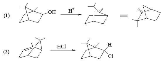 当片呐醇类在稀H2SO4存在下加热脱水时发生特殊的分子内部的重排反应生成片呐酮。如用盐酸、草酸、I2/CH3COOH、CH3COOH等脱水-转位剂以代替H2SO4可得相同的结局:
