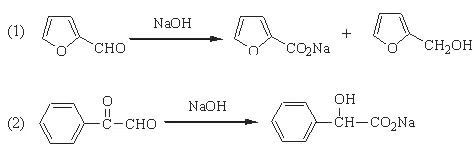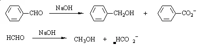 凡α位碳原子上无活泼氢的醛类和浓NaOH或KOH水或醇溶液作用时,不发生醇醛缩合或树脂化作用而起歧化反应生成与醛相当的酸(成盐)及醇的混合物。此反应的特征是醛自身同时发生氧化及还原作用,一分子被氧化成酸的盐,另一分子被还原成醇: