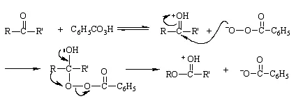 酮类化合物用过酸如过氧乙酸、过氧苯甲酸、间氯过氧苯甲酸或三氟过氧乙酸等氧化,可在羰基旁边插入一个氧原子生成相应的酯,其中三氟过氧乙酸是最好的氧化剂。这类氧化剂的特点是反应速率快,反应温度一般在10~40℃之间,产率高。