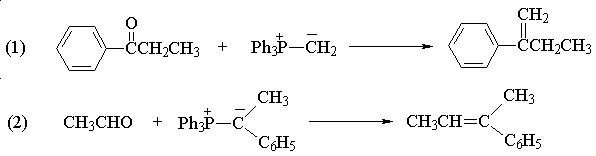 Wittig 试剂与醛、酮的羰基发生亲核加成反应,形成烯烃: